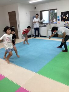 伝言ゲームは途中から内容が変わっていたり~(笑)、足でボールを渡す活動ではこども達は上手にできていましたが