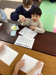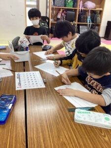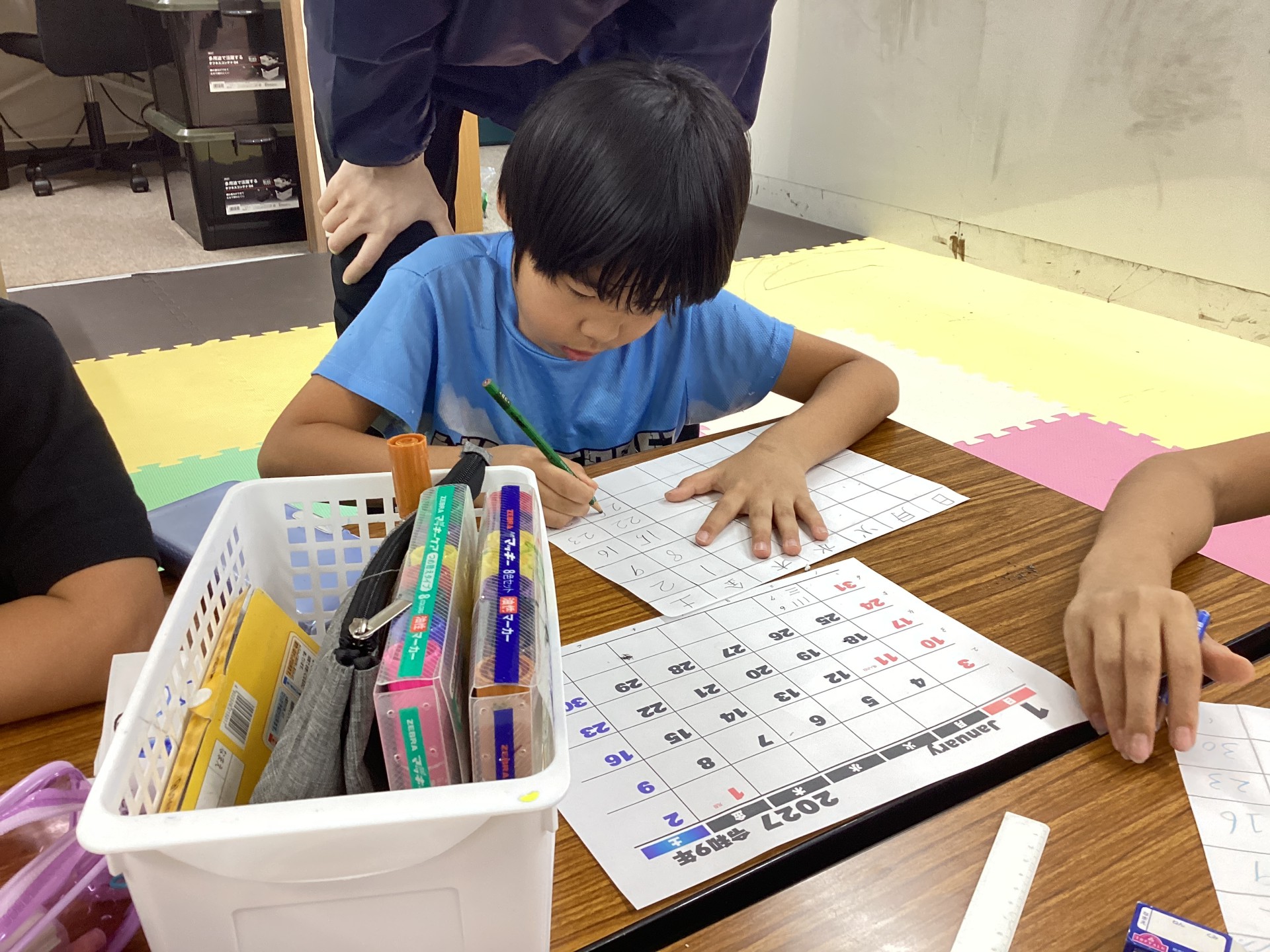 見本を見ながら、曜日と数字を書いています!!ビジョントレーニングも兼ねた制作を行いました。