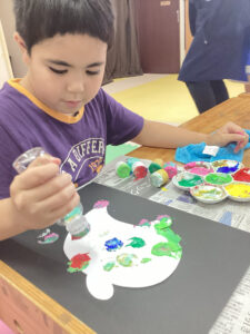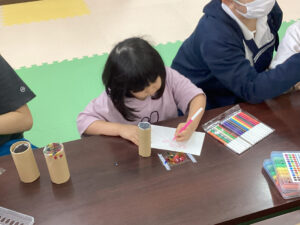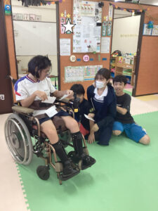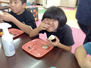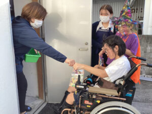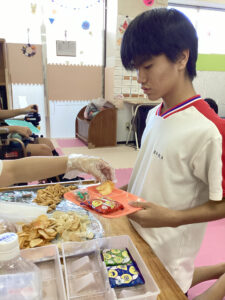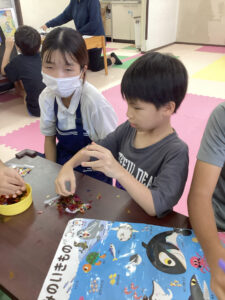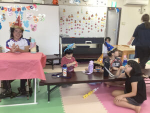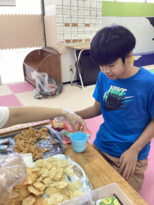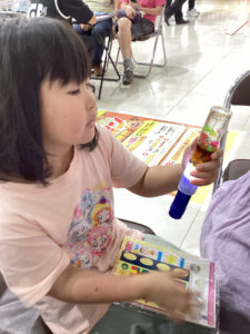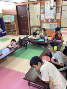 南風原教室では隣の事務室も使ってお菓子を貰いに行きました。