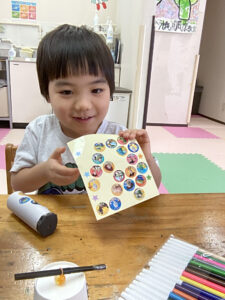 キラキラ光るセロハンを貼って、外側のイラストも自分でデザインして…