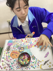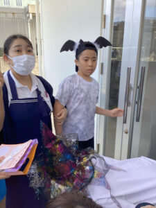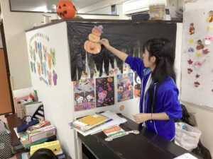教室ではハロウィンの仮装を楽しんでいます。