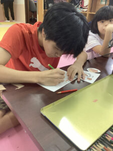 何のイラストを描くのかお友達と相談中…