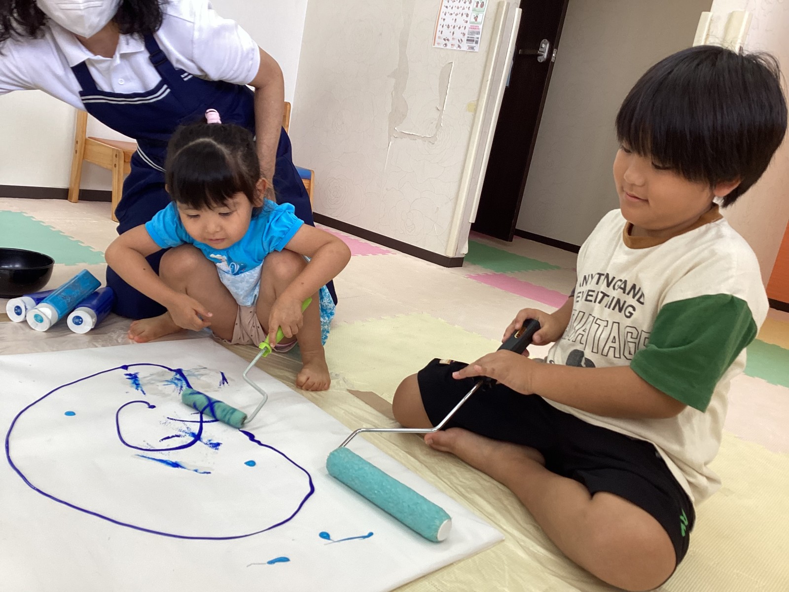 手でペッタン!!手形を付けて遊んだりと大はしゃぎな子ども達ですヽ(^o^)丿