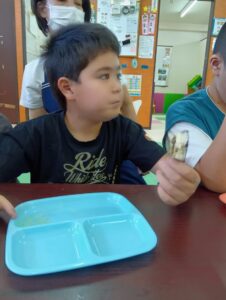 自分たちは一番最後で他の子たちから先に配る