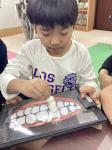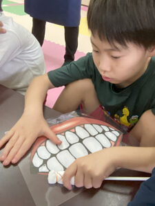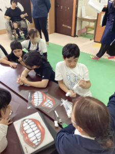 鏡を見ながら自分の歯と思って実践する子も
