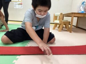 先生の「だーるまさんがこーろんだ👀!!」の合図でストップして5秒間動かないように我慢するのが