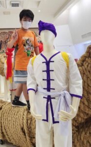 与那原町の伝統行事で使われる大綱や衣装などが展示されていて、