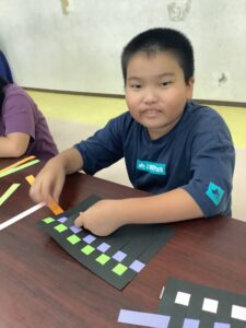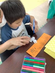 色とりどりの画用紙を使い、色の組み合わせを工夫しながら