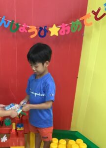 お友達からプレゼントを受け取って、一緒に記念撮影📸