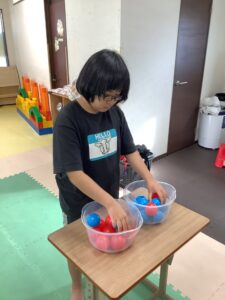 ☆両手を使って同時に赤と青のボール交換