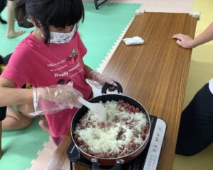 みんなの頑張りでとってもおいしいタコライスが出来ました🤤