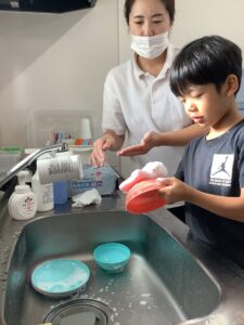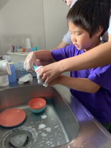お皿洗いに挑戦しました😀