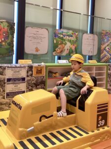 また、遊び場にあるダンプカーの乗り物に乗って変装したり操作することを楽しみました(^▽^)/