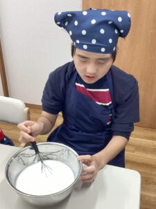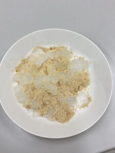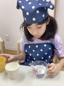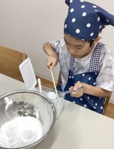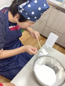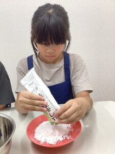 まず、片栗粉と砂糖と水を測ってボウルに入れます!