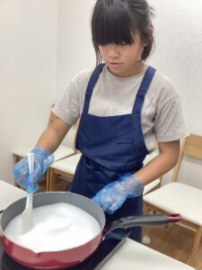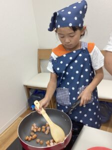 硬くなってきたら、フライパンから取り出し、丸めます!