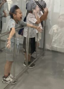 強風体験では、風に立ち向かう子もいれば、前髪を押さえて頑張っている子もいました💦