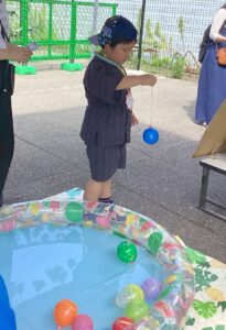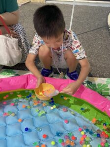 保護者と一緒にメイン看板で写真を撮ったり、スーパーボール・ヨーヨーすくい・段ボールつみなど楽しいブースがたくさんありました^^