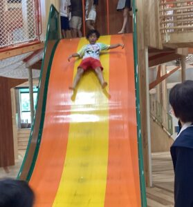 子どもたちは「たかーい!」や「こわーい!」と言いながらも滑っていました!