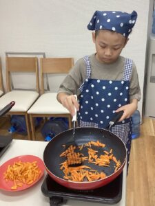 その後、フライパンに入れて硬くなるまで混ぜます🥣