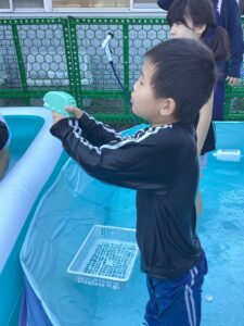 自分に水をかけたり、水鉄砲を使ったりと楽しそうに遊んでいました❤