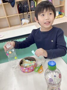 どんぐりとペットボトルを使ってオリジナルのマラカスを作りました。
