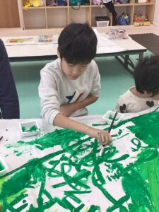 筆や手を使ってたくさんの緑を使用し、とてもきれいなツリーが完成しました!!!
