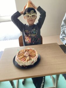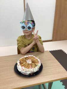 今回の誕生日会は「りんごケーキ🍎」を食べました!
