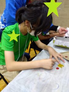 シールを貼ってオリジナルうちわを作ることが出来ました!