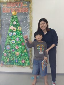 オーナメントは、それぞれ絵を描いて色塗りをして可愛く仕上がっています💗💚