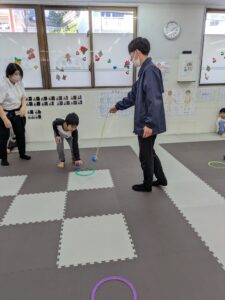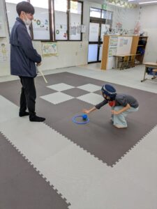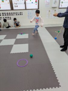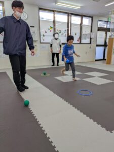 職員が回すボールを避けながら、下に置いてあるボールをキャッチ!!