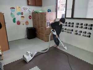 靴箱や床など、担当に分かれて頑張っていました✌