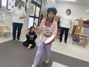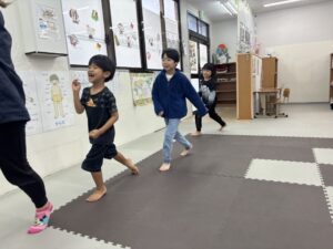 音楽に合わせて、職員の動きをマネしながら沢山歩きました!!