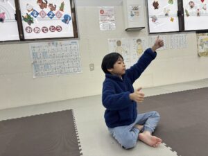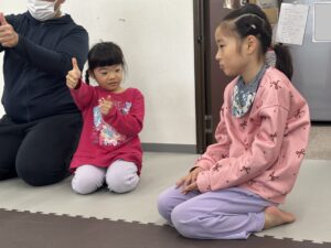 身体を動かした後は、目の運動~👀 目を上下、左右に動かしてトレーニングを行いましたっ😉