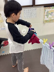 子ども達は背中に付いた洗濯バサミが難しそうで、大盛り上がりでした(≧▽≦)👏