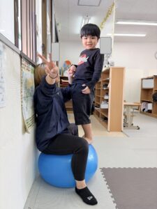 バランスボールは自由時間でも使う事が多く、しっかり使いこなしていました🤣💚