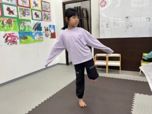 片足キープ・棒マットバランス・ボールシュート・洗濯バサミ取りをしました😀