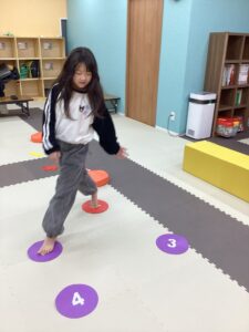 11月のサーキットでは、バランスストーンを使った運動遊びを行いました。