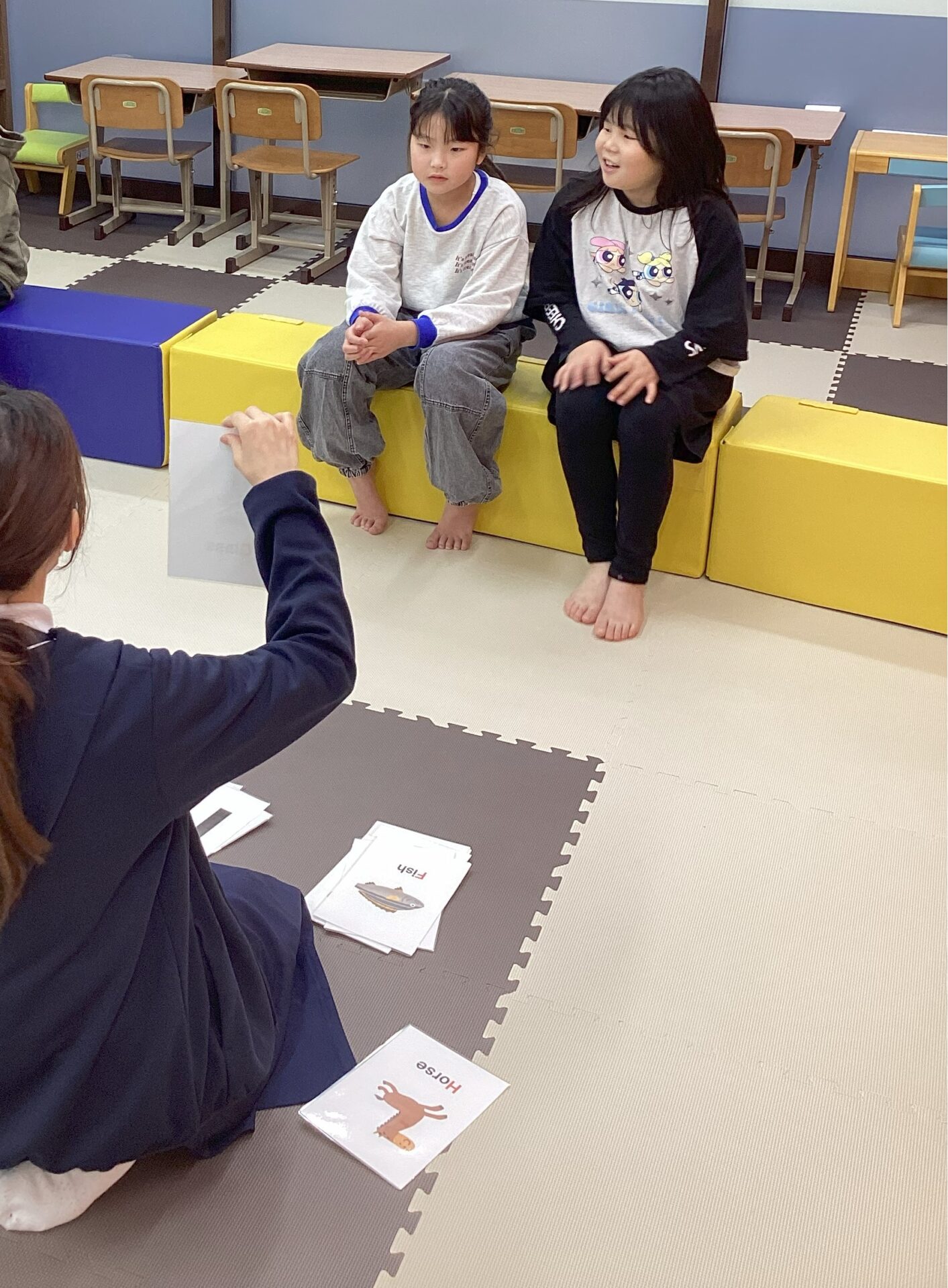次に、英語のイラストが描かれたカルタを使ってゲームを行いました♪