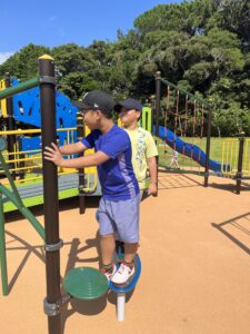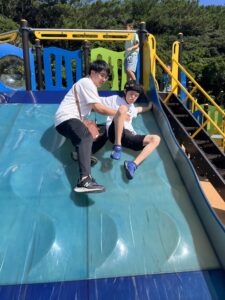 すべり台の所までも足元が不安でしたが、職員と頑張り見事すべり台✨成功✨
