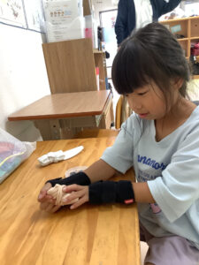 てのひら全体を使って「にぎる・ねじる・ひらく・ちぎる」など