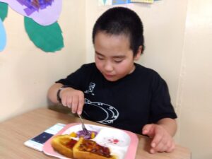 みんなでハッピーバースデーを歌い、フレンチトーストでお祝いしました(^o^)