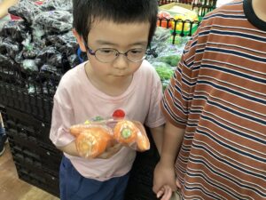 事前にみんなで「カレーに入れる具材は何かな?」と話し合い、買い物リストを作成しました(^▽^)