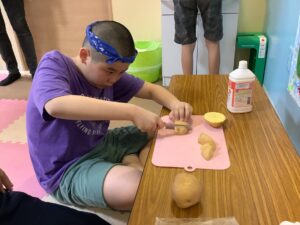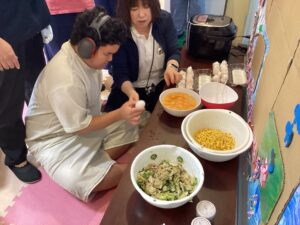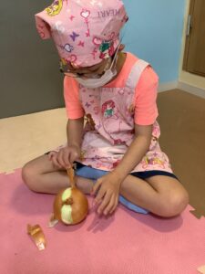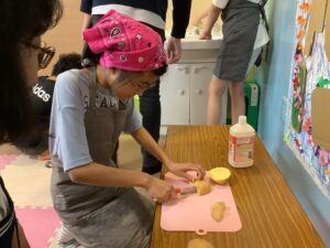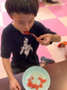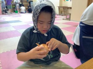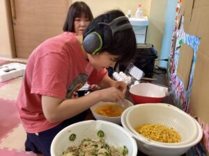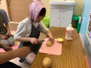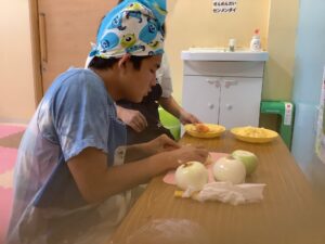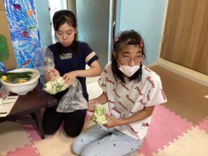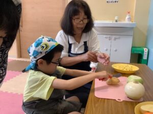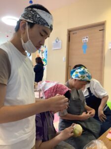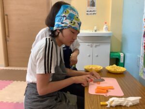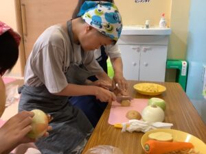 スタッフと一緒に野菜の皮をむいたり、切ったりしてくれました(^^)