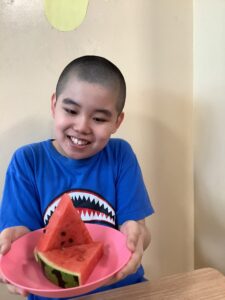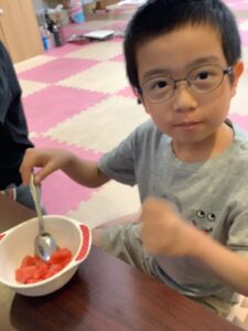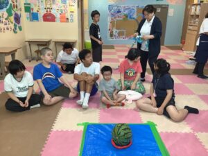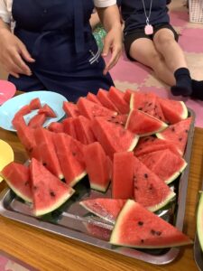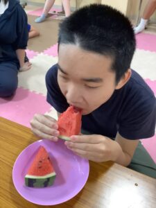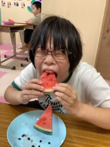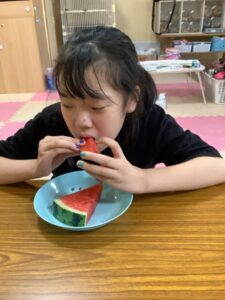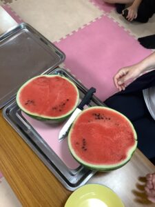 冷たくて甘いスイカは、みんなでおいしくいただきました(^▽^)