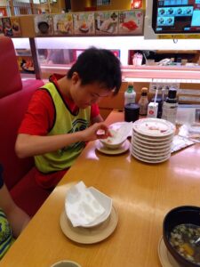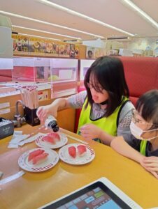 タブレットで注文したり、レーンからお皿を取ってくれました!