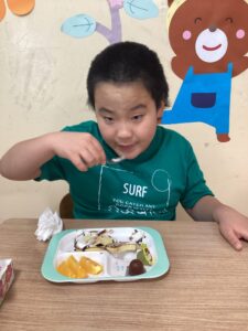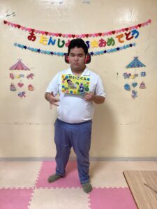 みんなでバースデーソングを歌い、手作りのカードを渡して、