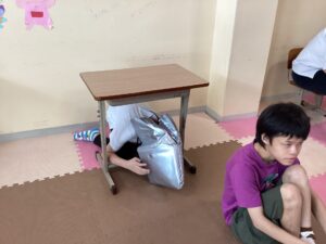 今月の避難訓練は「防災頭巾の被り方」について学びました!