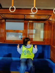 電車の中に入ってふかふかの椅子に座ってみたり、実際に電車が走っているところを下から見ることができて、子どもたちも大喜びでした(*^^*)また行こうね~★