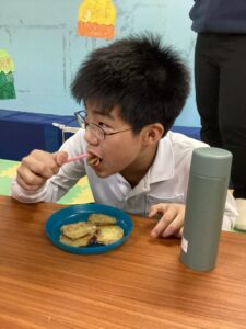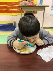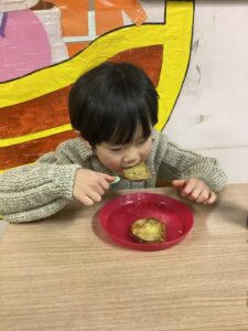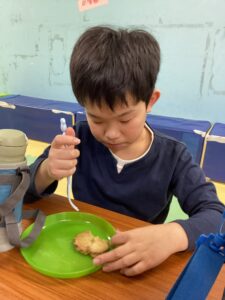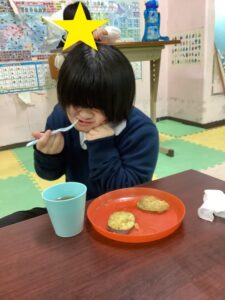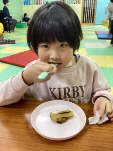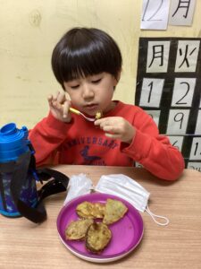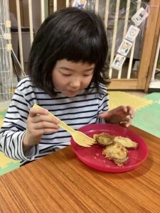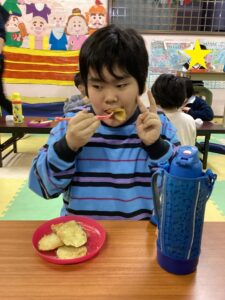 子どもたちの大好きなサツマイモ揚げを食べました!美味しかったね(´艸`*)