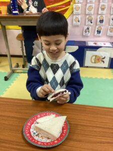 手作りおやつはサンドウィッチを食べました♪